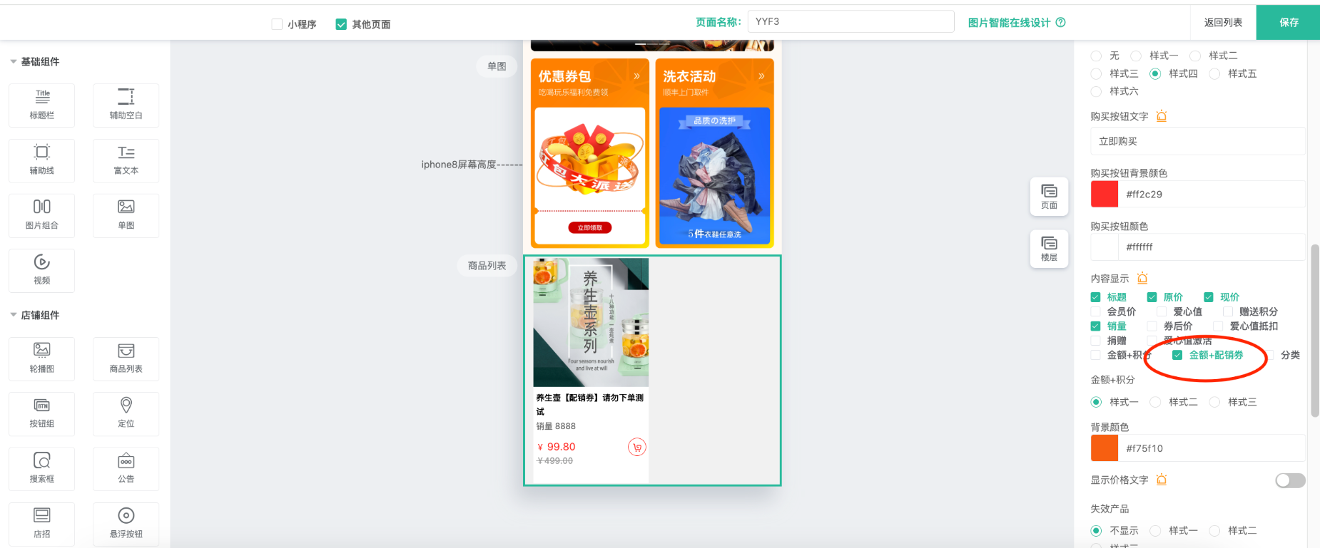 七、后台装修页面商品组件增加金额+配销券内容显示