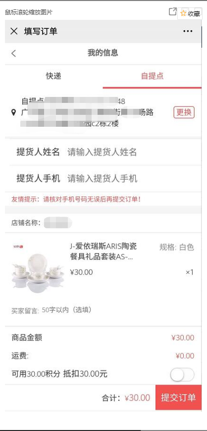5、会员购买自提点商品下单效果。