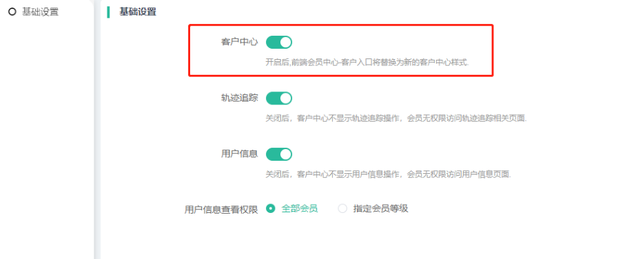 关闭后,客户中心不显示轨迹追踪操作,会员无权限访问轨迹追踪相关页面.