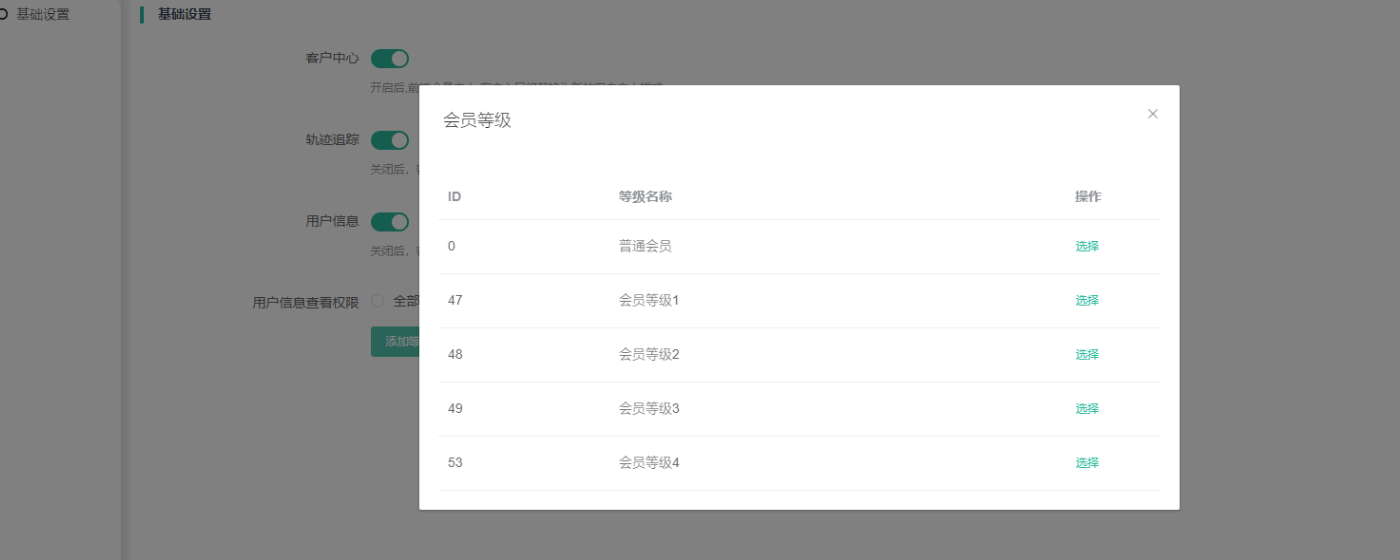 (四)用户信息查看权限:全部会员、指定会员等级。