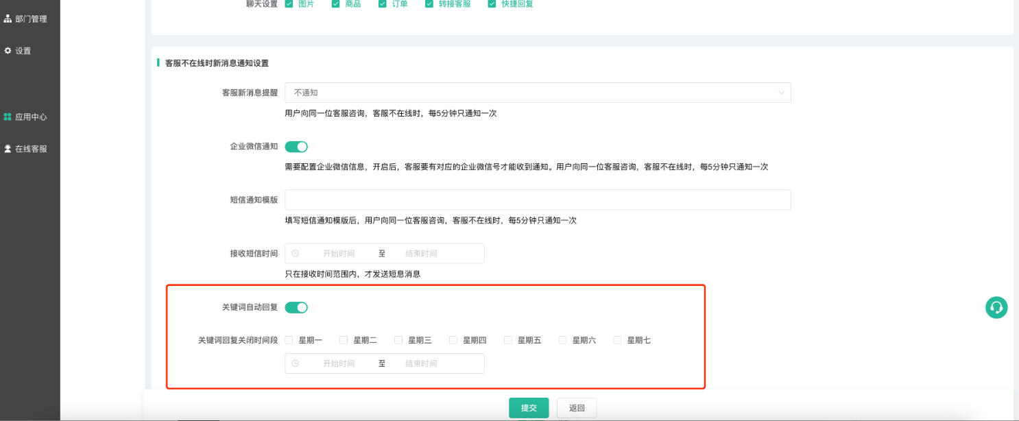 关键词自动回复关闭时间段功能说明: