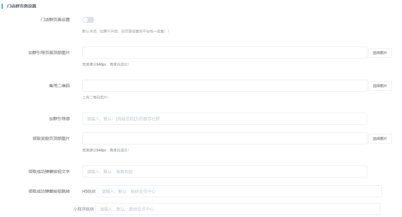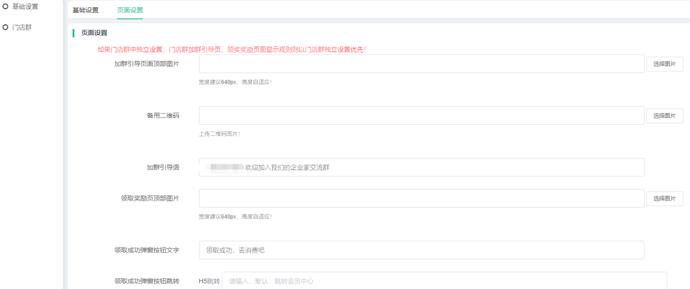 如果门店群中独立设置,门店群加群引导页、领奖奖励页面显示规则则以门店群独立设置优先!