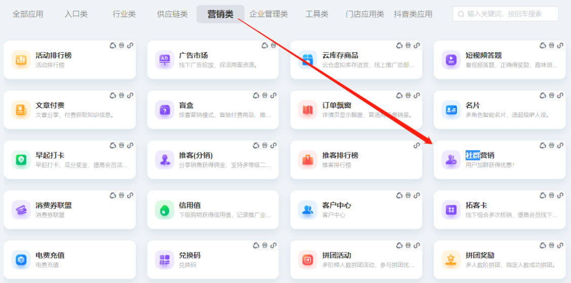 功能概述:以福利(优惠券、积分等)作为入群吸引点,引导客户扫码进入指定群/门店群,商家通过社群直接触达客户,再以社群专属权益持续拉动销售额和客户转化率。
