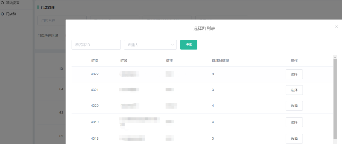 门店群开关:开启后加群页会变成选择加门店群页