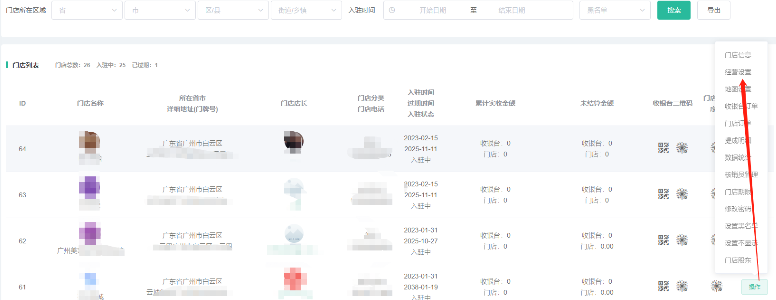 门店收银台插件--门店管理-经营设置