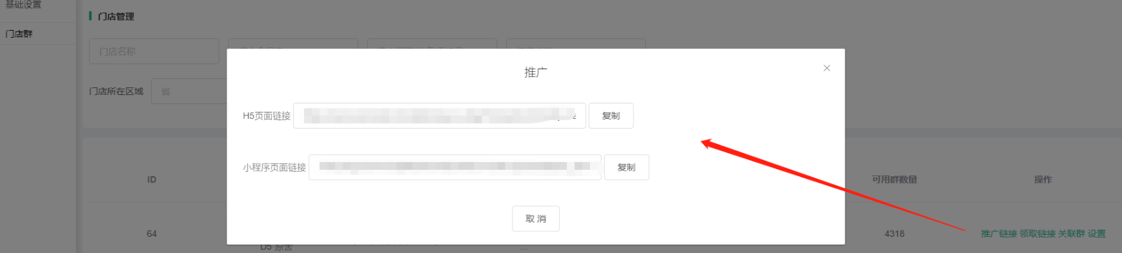 2、推广链接/领取链接:门店独立的推广/独立链接